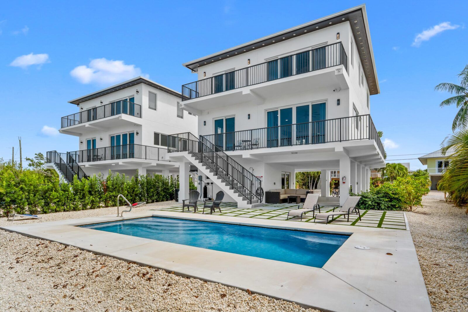 Experience modern coastal luxury at Azul Paradise, a stunning 3BR 2BA waterfront haven in Marathon, FL with heated pool, game room, private dock, and chic beach design.
