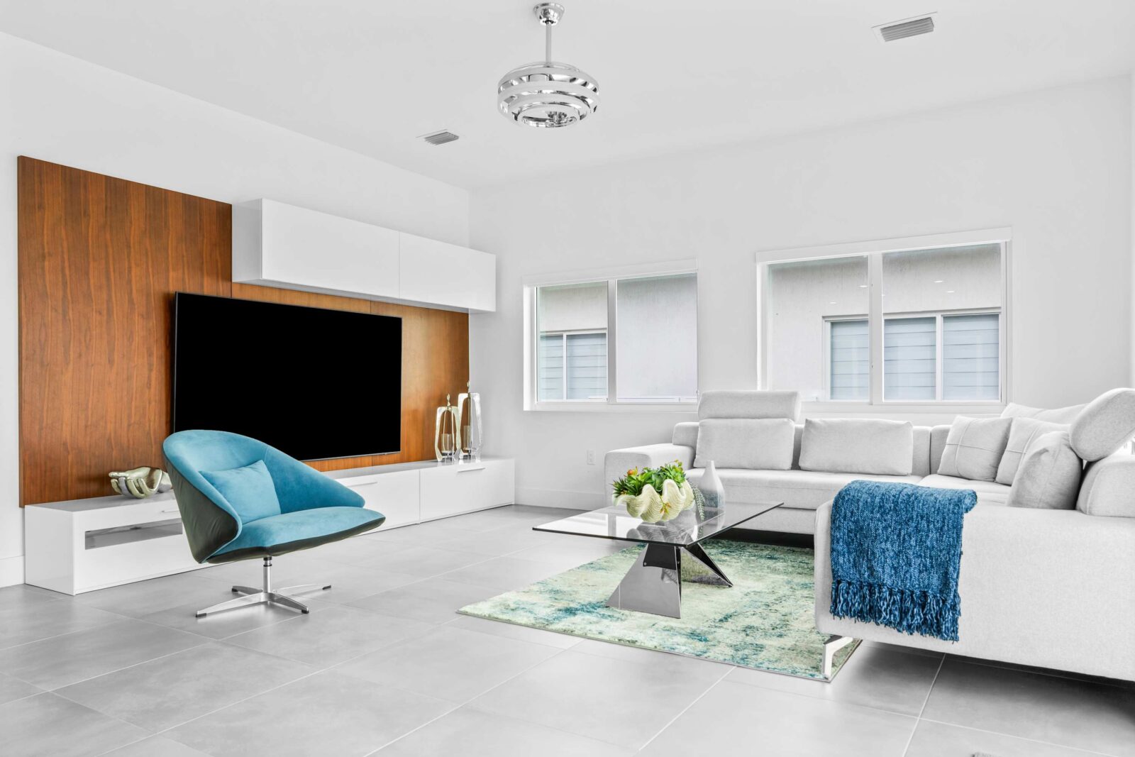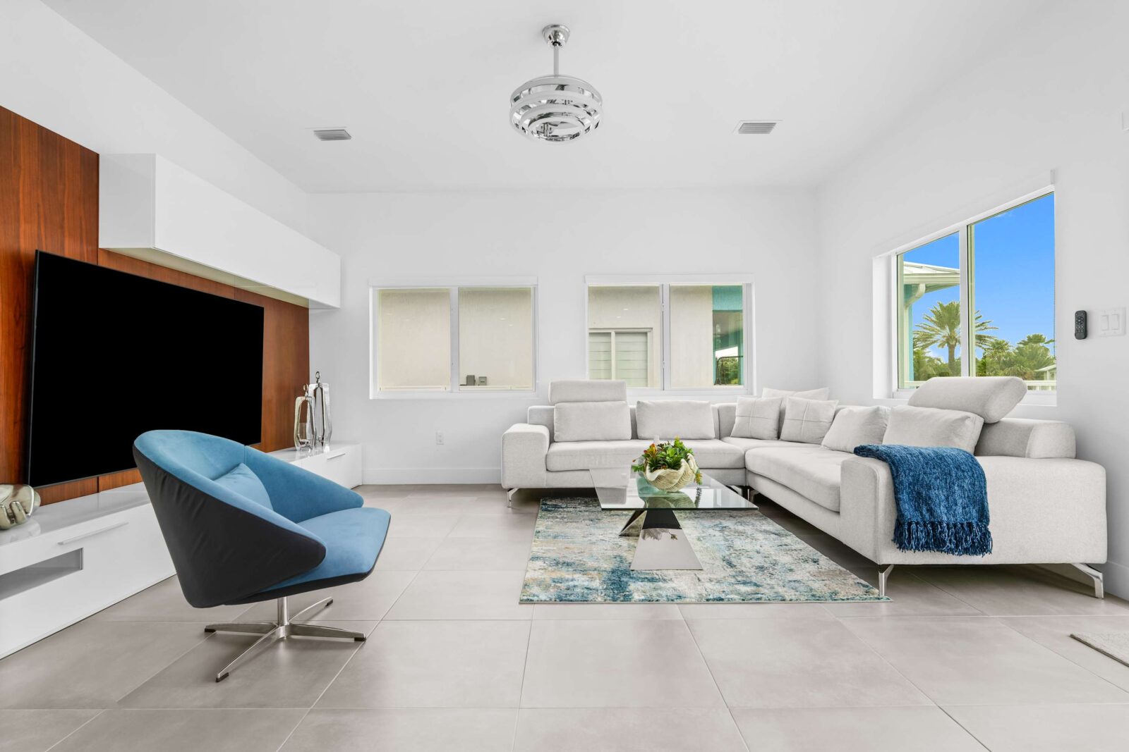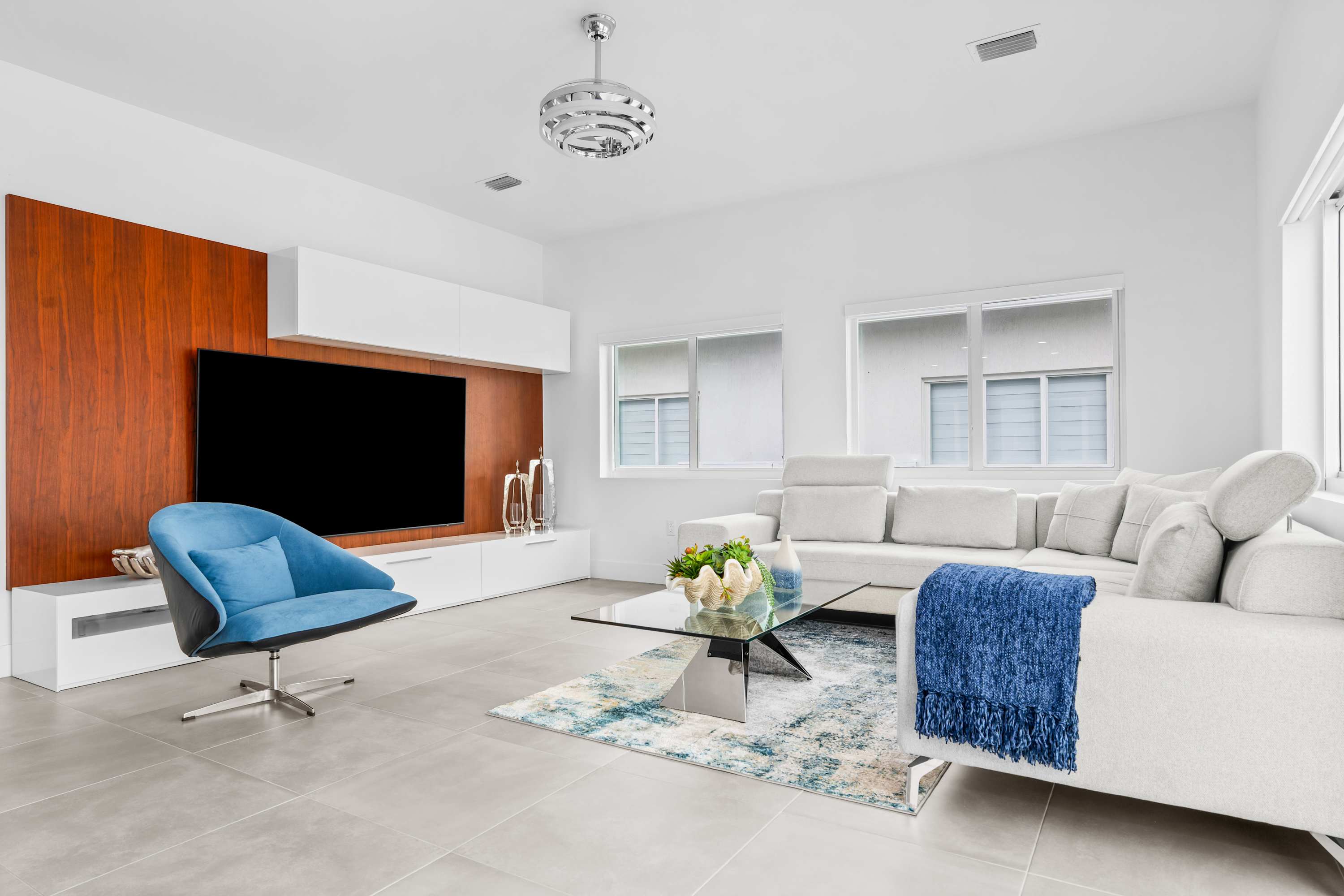 The interior features modern furnishings enhanced by abundant natural light that highlights the fresh, contemporary décor. This is best seen in the open-concept living area, which seamlessly combines the stylish living room with the fully equipped gourmet kitchen and elegant dining spaces.