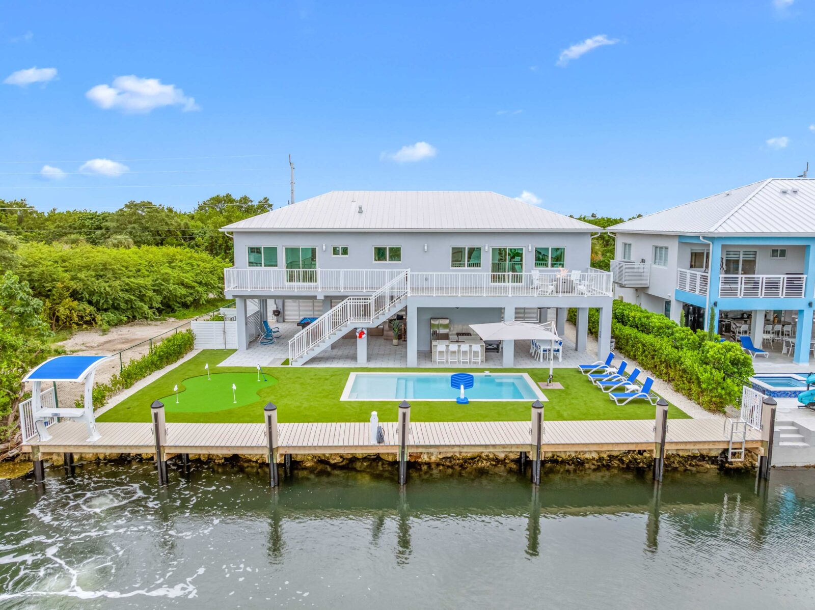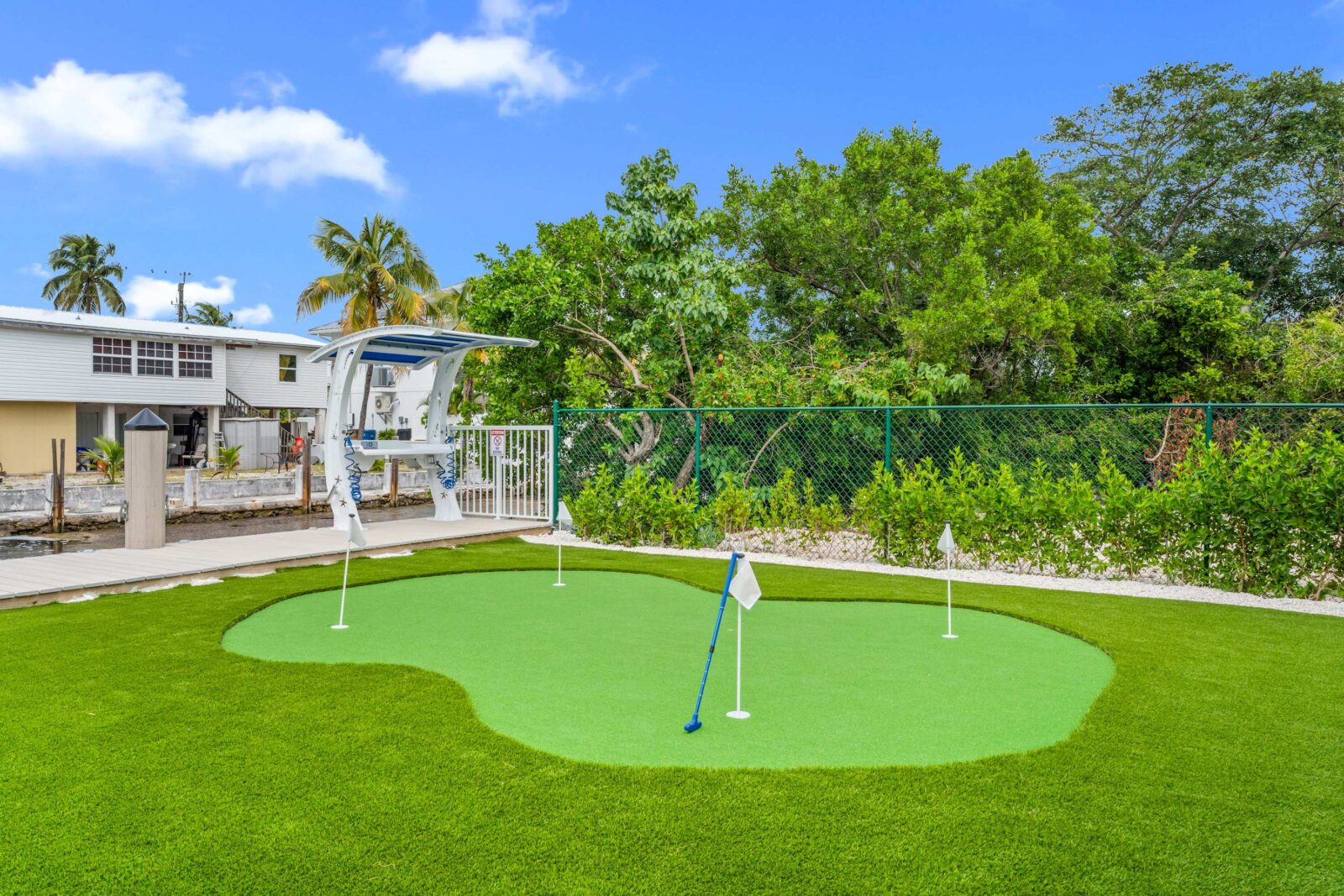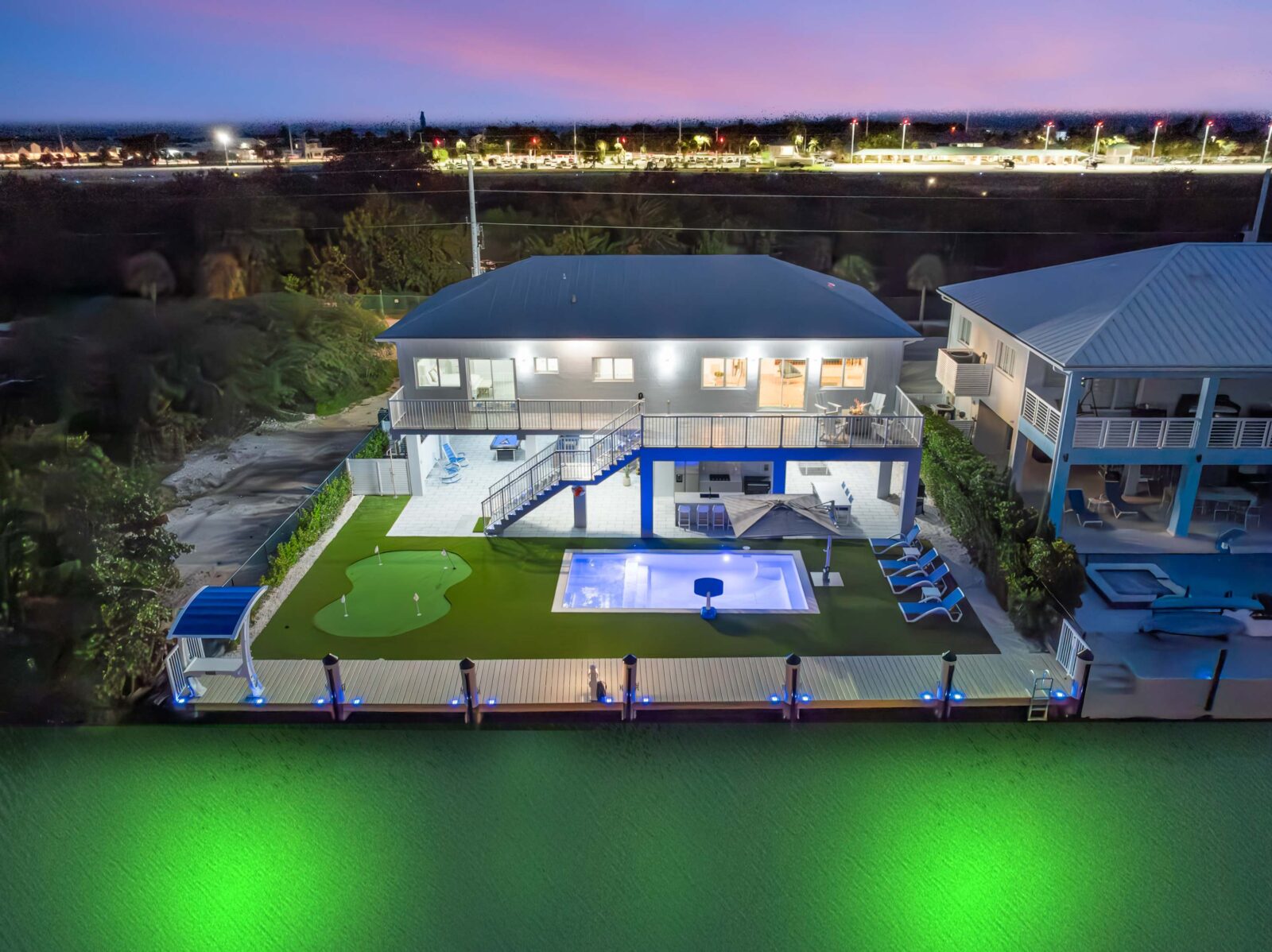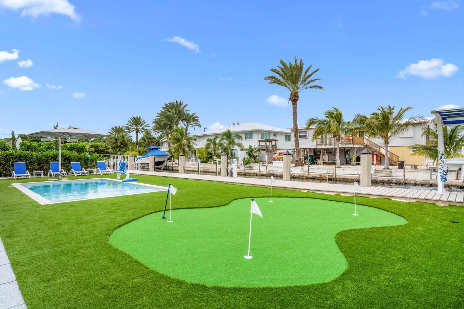 Step outside to discover multiple outdoor living areas perfect for soaking up the Florida Keys sunshine. Lounge by the heated swimming pool, test your putting skills on the private putting green, gather around the propane fire pit, fire up the outdoor kitchen island, or enjoy al fresco dining while taking in the canal views.