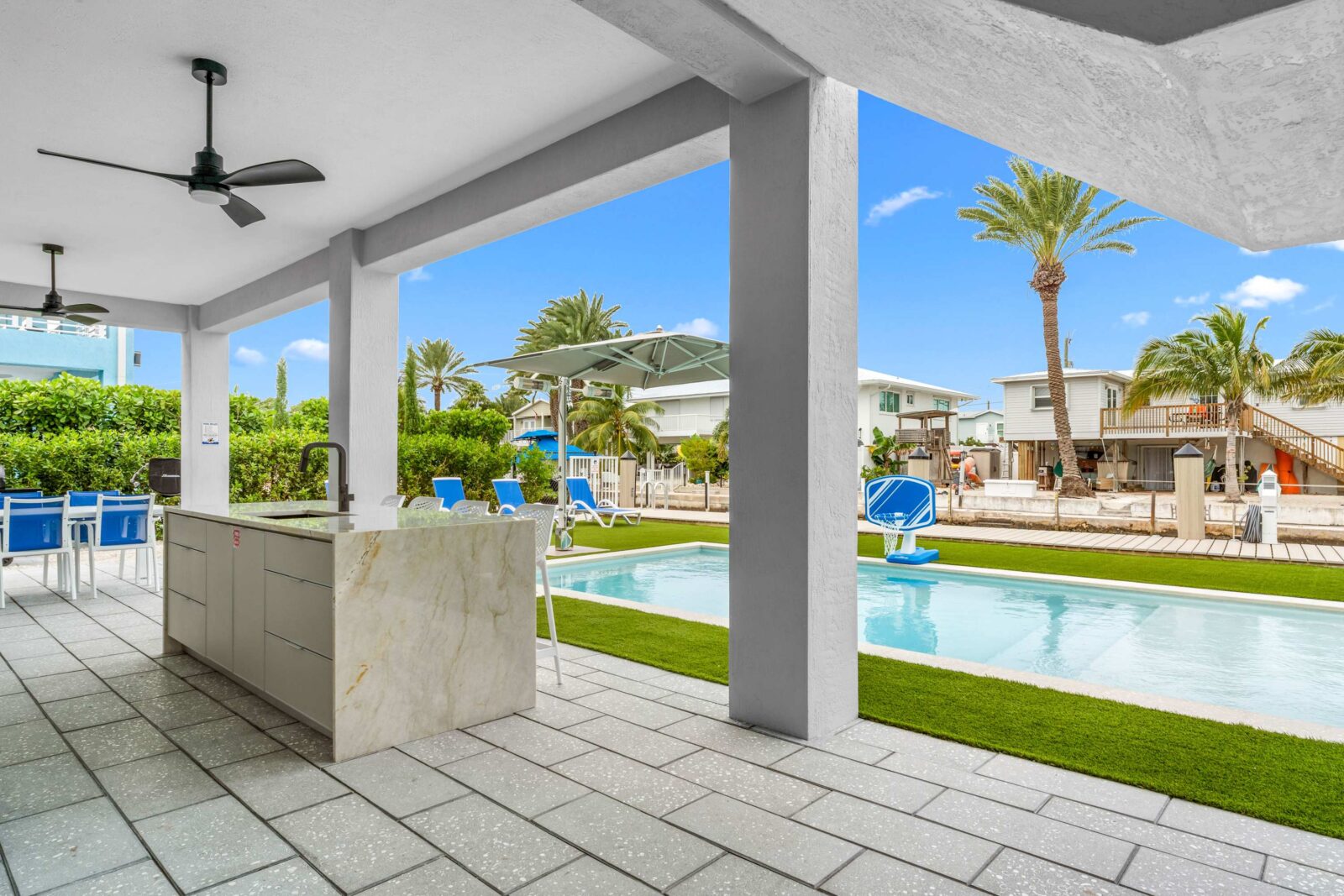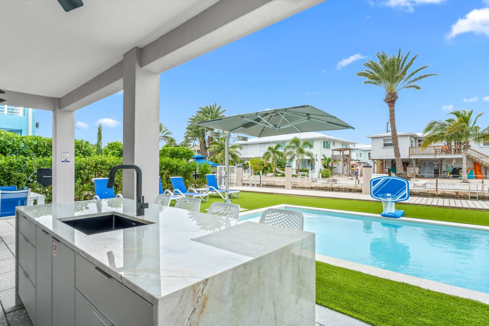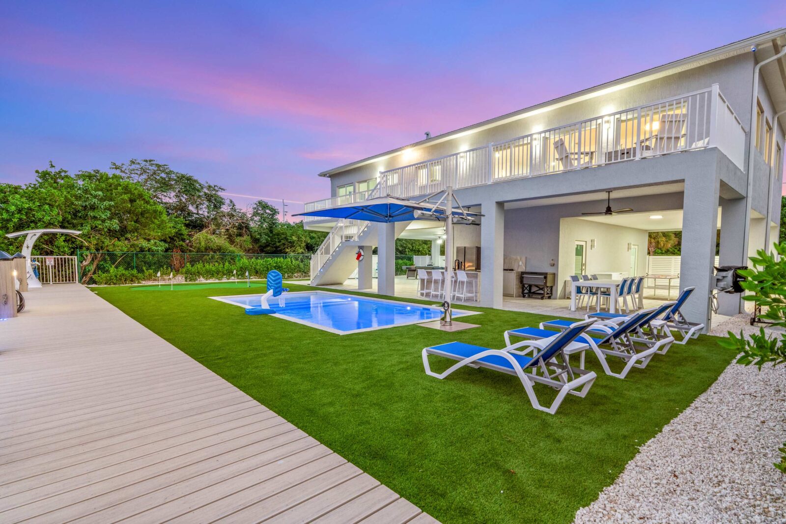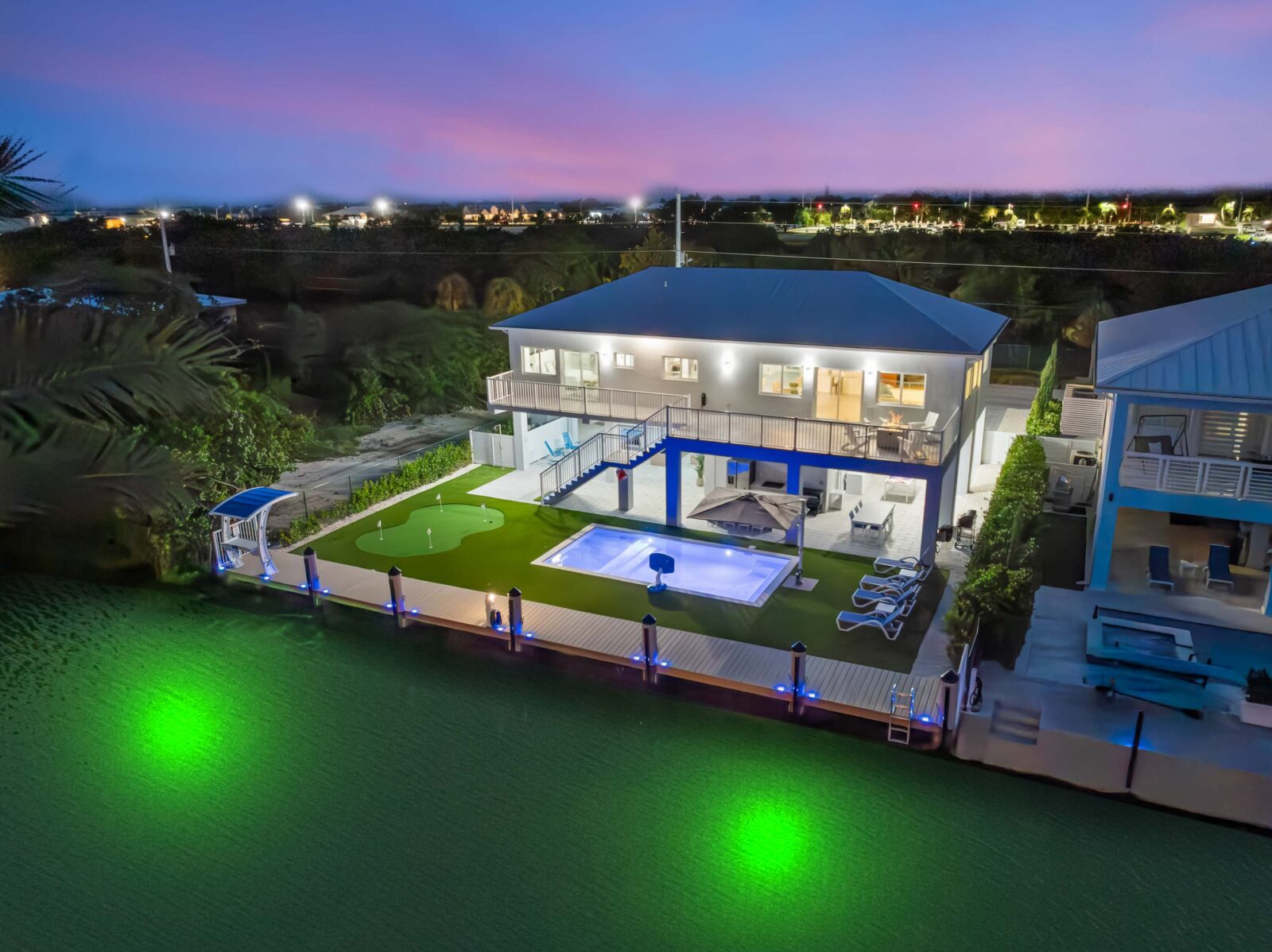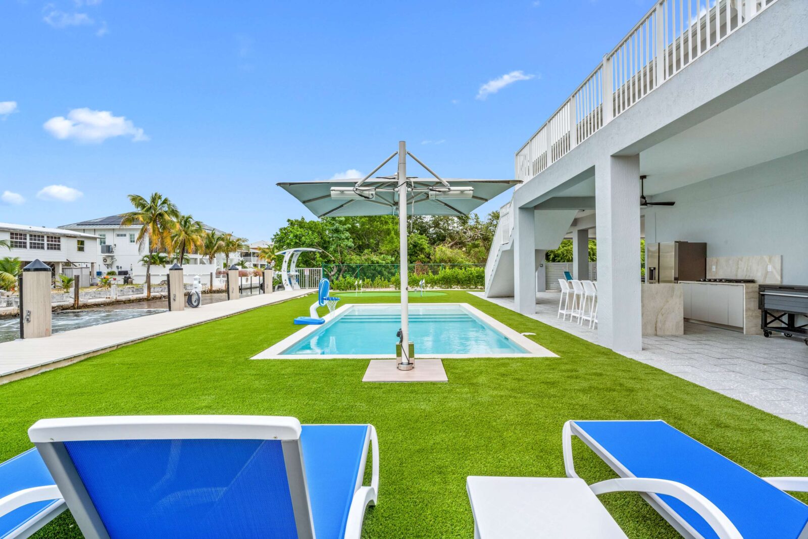 Step outside to discover multiple outdoor living areas perfect for soaking up the Florida Keys sunshine. Lounge by the heated swimming pool, test your putting skills on the private putting green, gather around the propane fire pit, fire up the outdoor kitchen island, or enjoy al fresco dining while taking in the canal views.