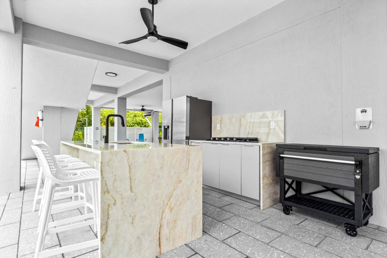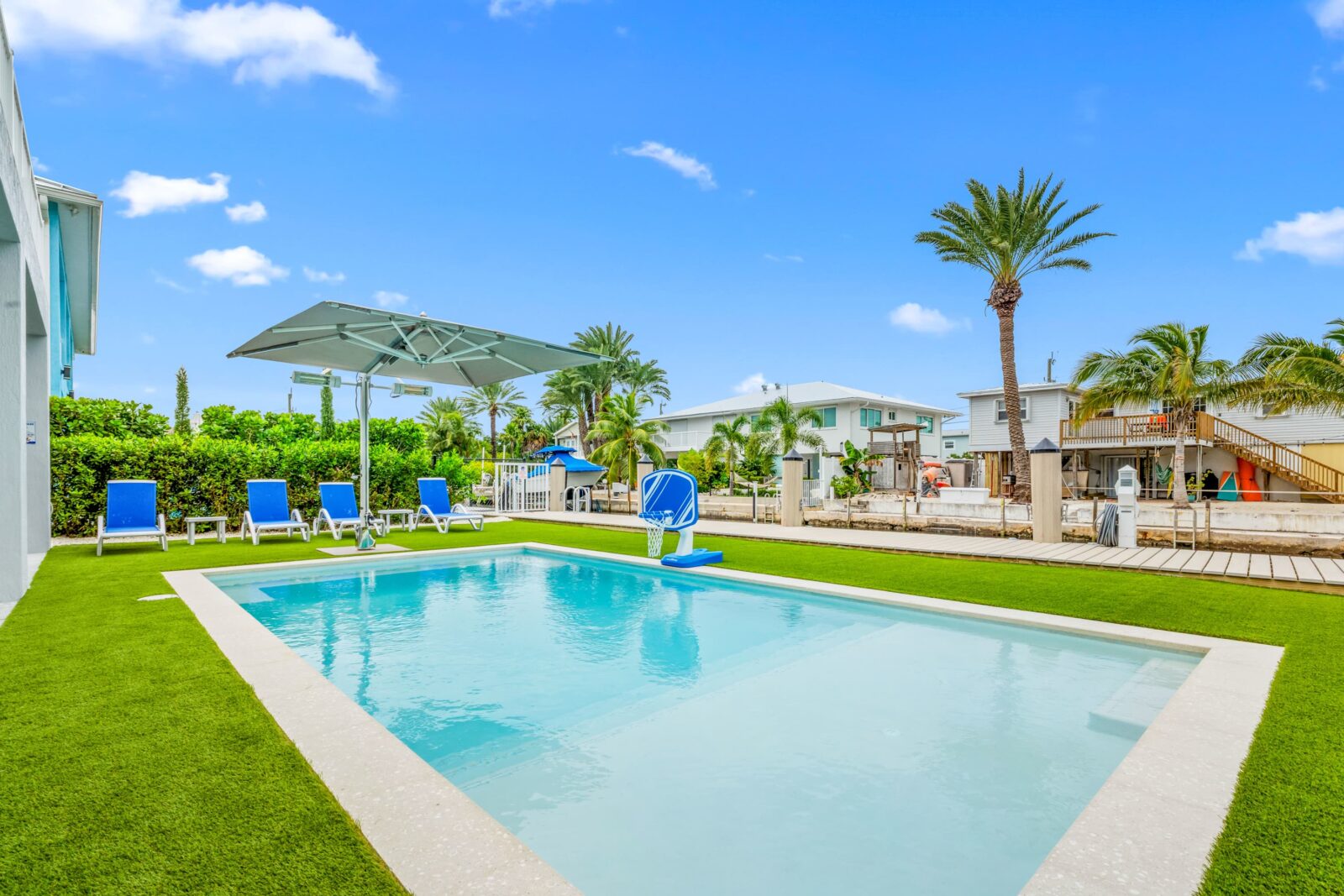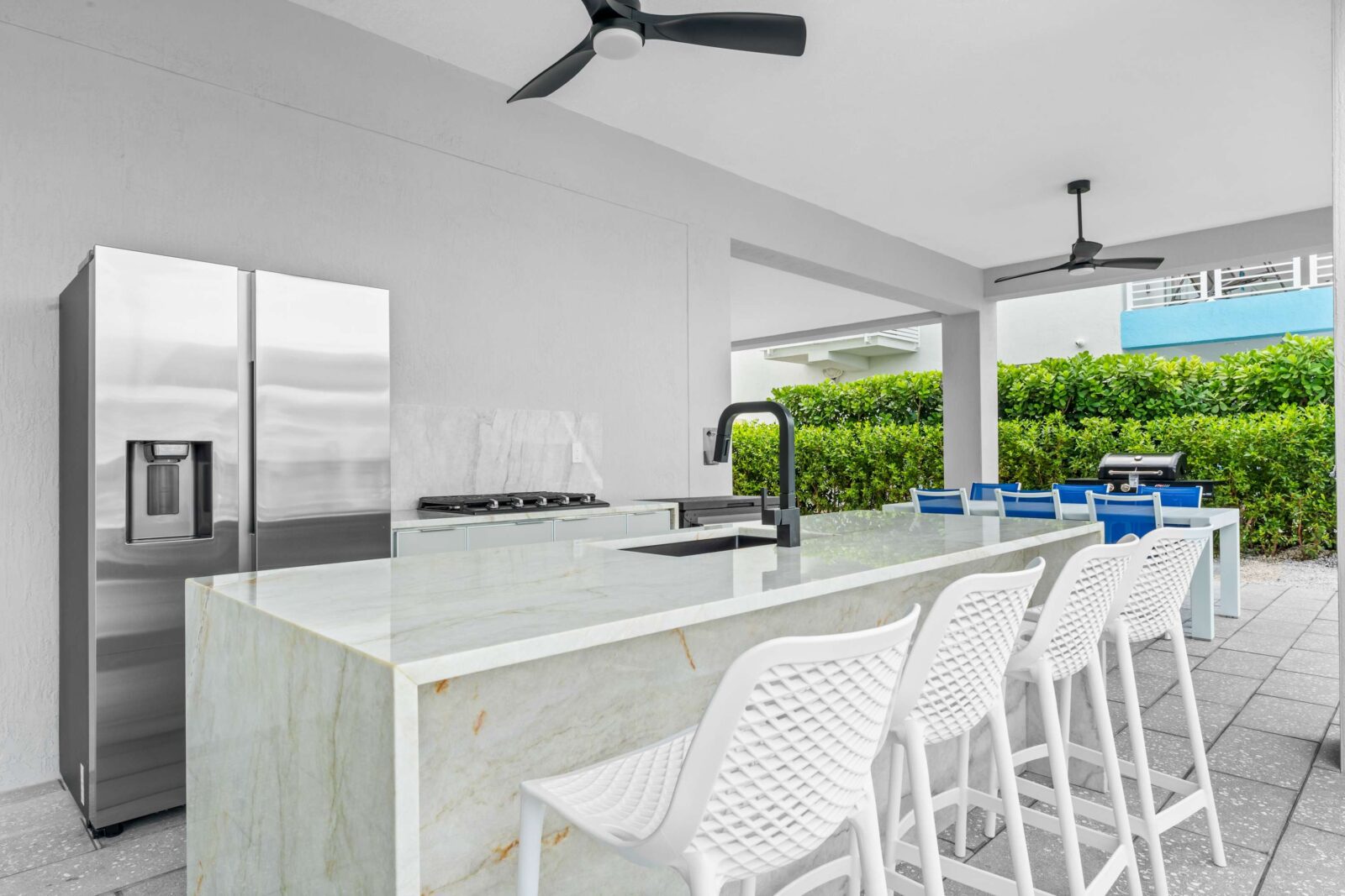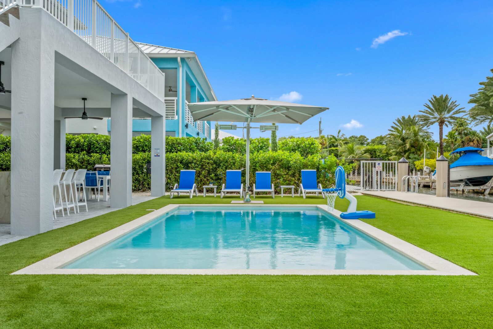 Step outside to discover multiple outdoor living areas perfect for soaking up the Florida Keys sunshine. Lounge by the heated swimming pool, test your putting skills on the private putting green, gather around the propane fire pit, fire up the outdoor kitchen island, or enjoy al fresco dining while taking in the canal views.