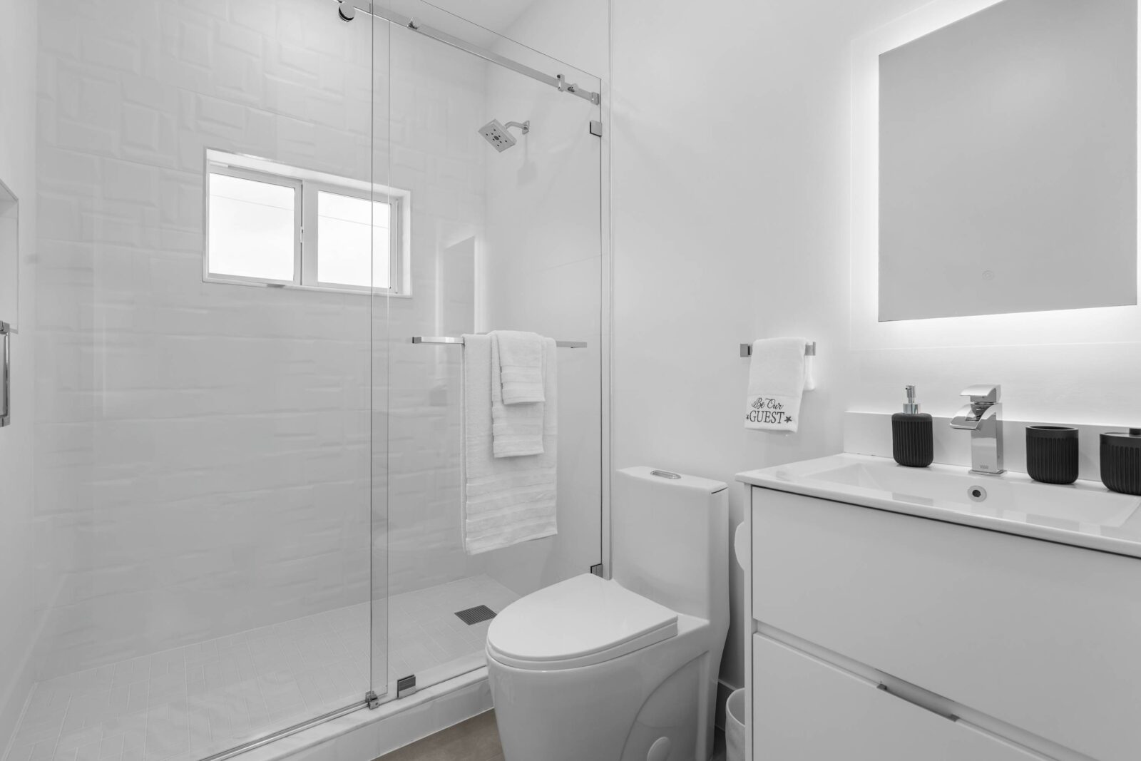This home features three full bathrooms, fully stocked with essential toiletries and fresh towels to ensure optimal comfort.