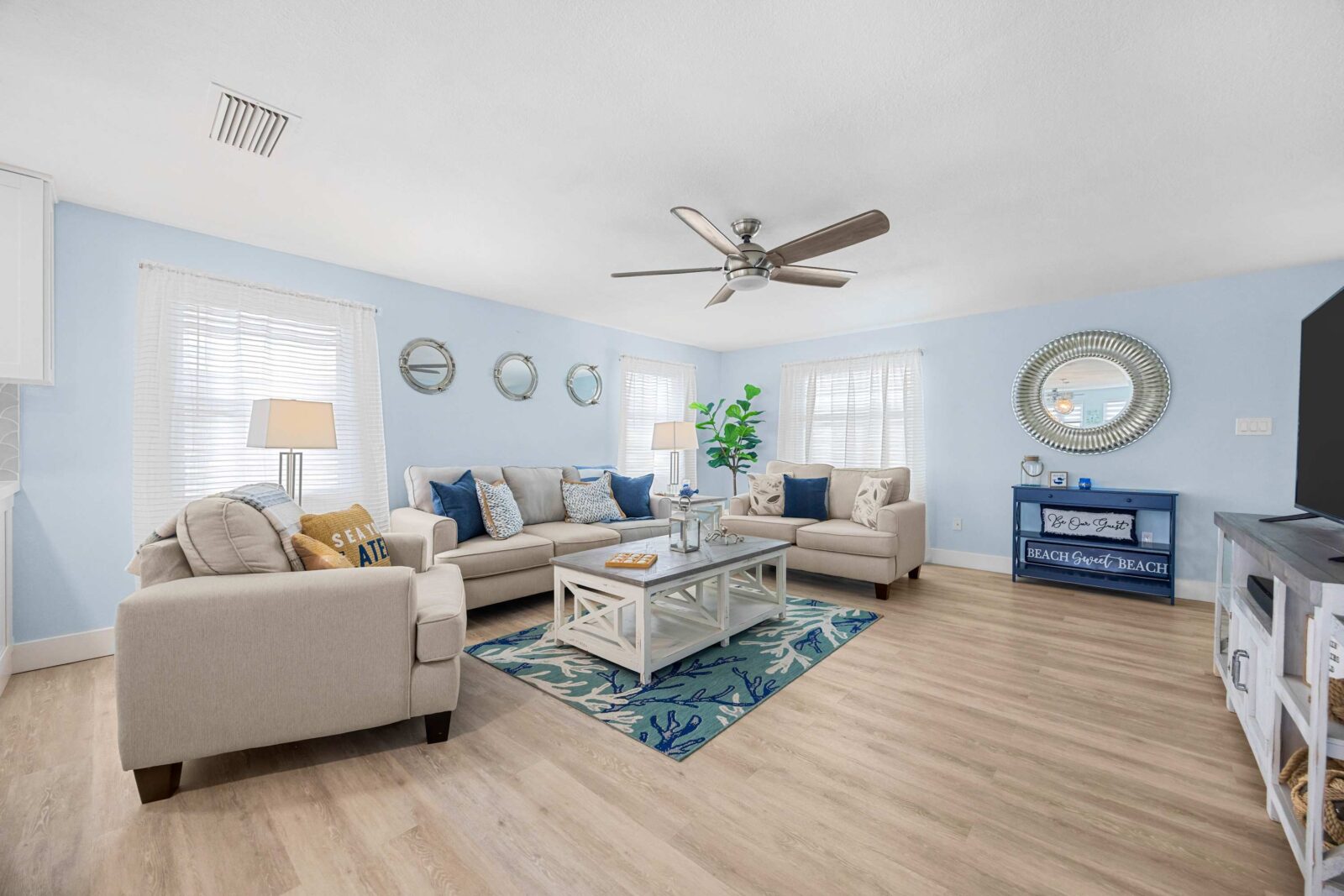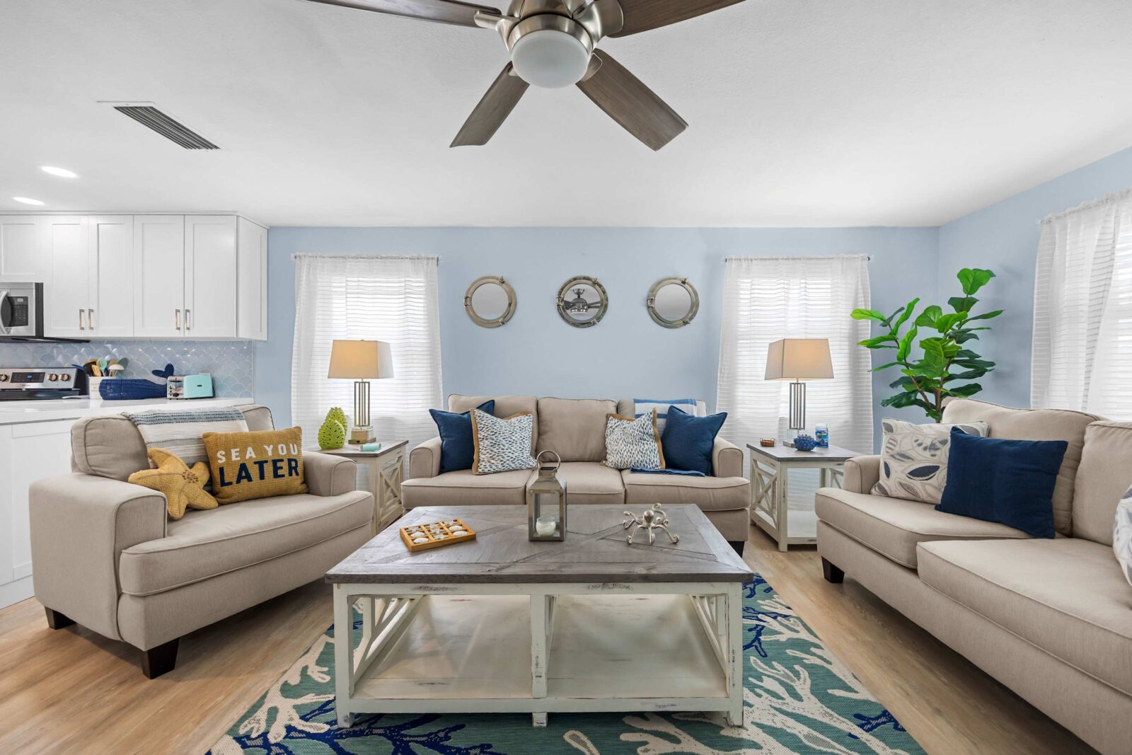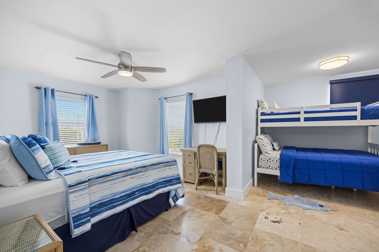 ✔ 2 Comfortable BRs (King, Queen + Full/Twin Bunk)