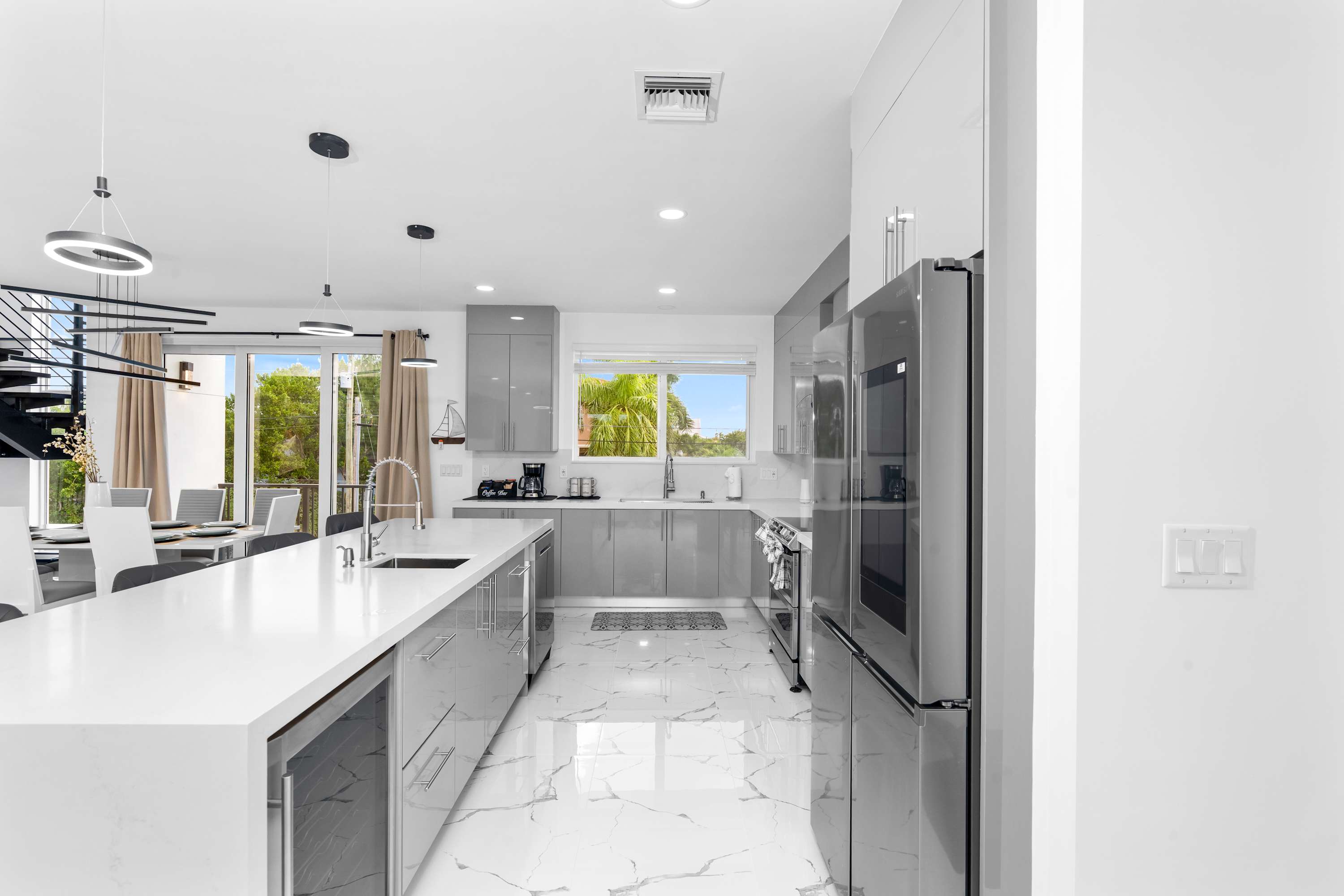 The interior is touched by beautiful furnishings enhanced by abundant natural light that highlights the high-end décor. This is best seen in the open-concept design living area, which combines the stylish living room with the fully equipped chef's kitchen and gorgeous dining area.