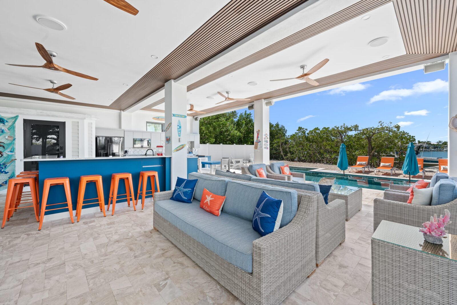 Step into the luxurious 5BR 5.5Bath waterfront getaway in the tranquil area of Marathon, FL! Escape the big-city crowds and enjoy the soothing ambiance from the private backyard with the pool and dock while being just a short drive from exciting attractions and natural landmarks.