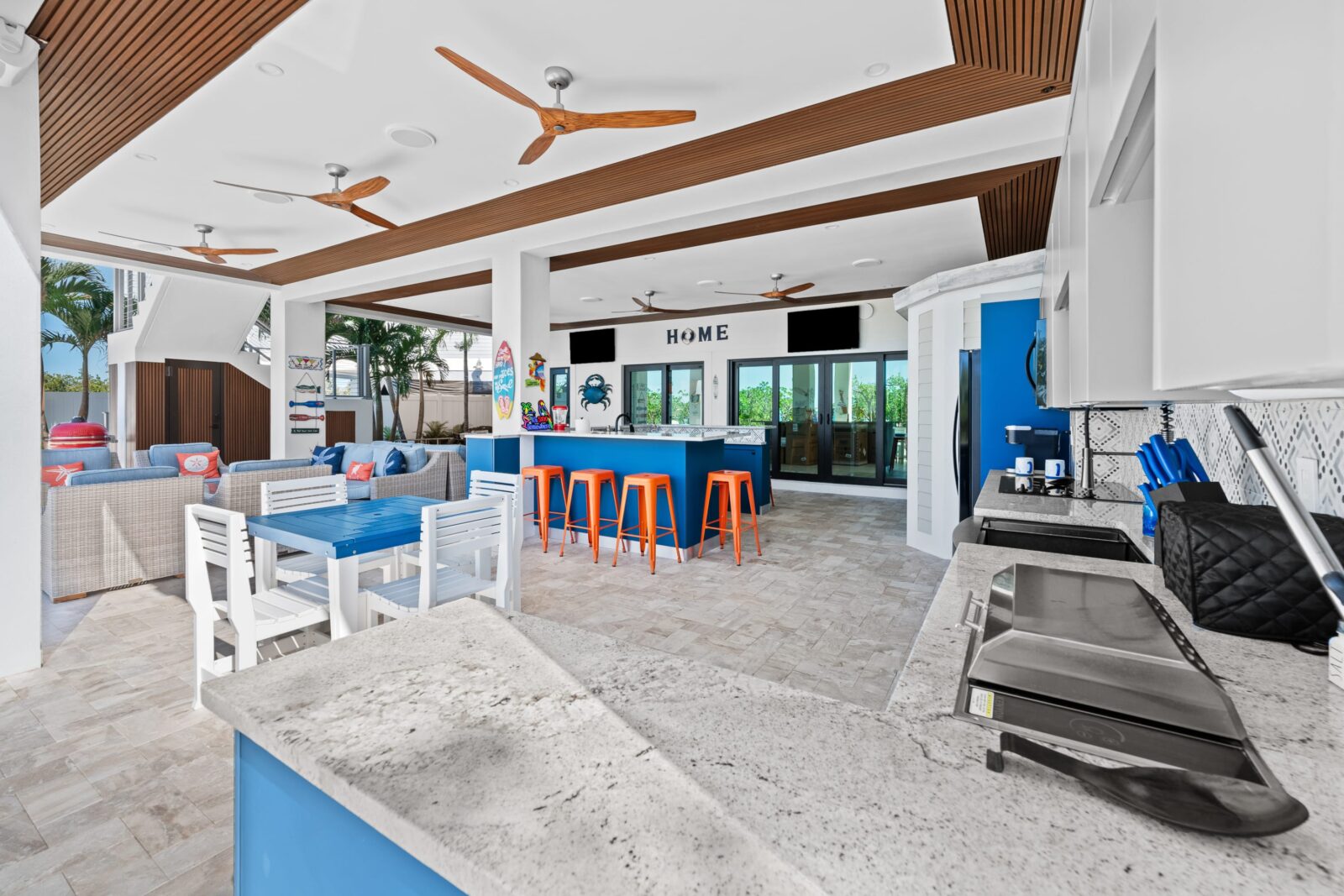 ✔ Backyard (Lounge, TVs, Heated Pool + Jacuzzi, Sound System, Fire Pit, Kitchen, Bar)