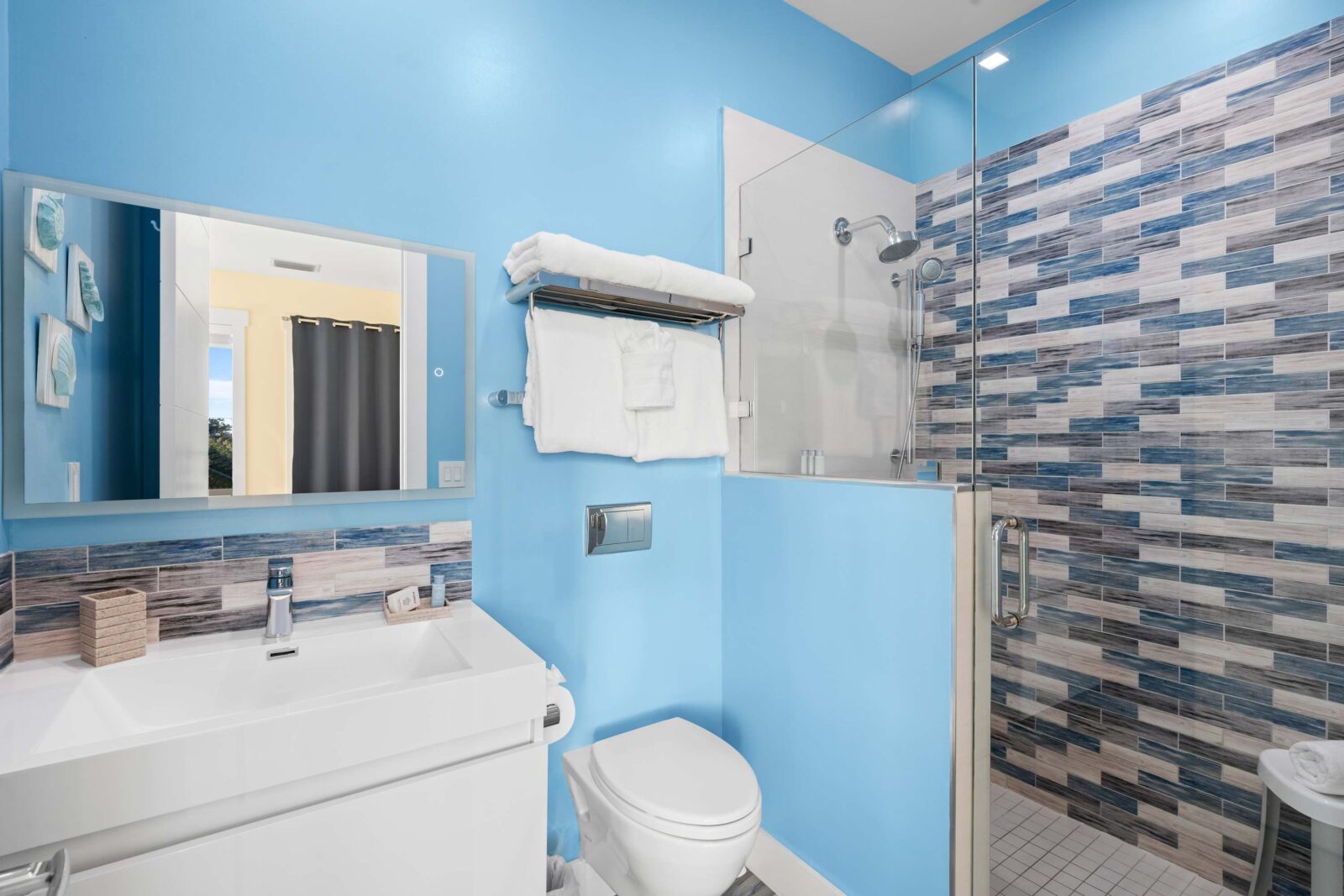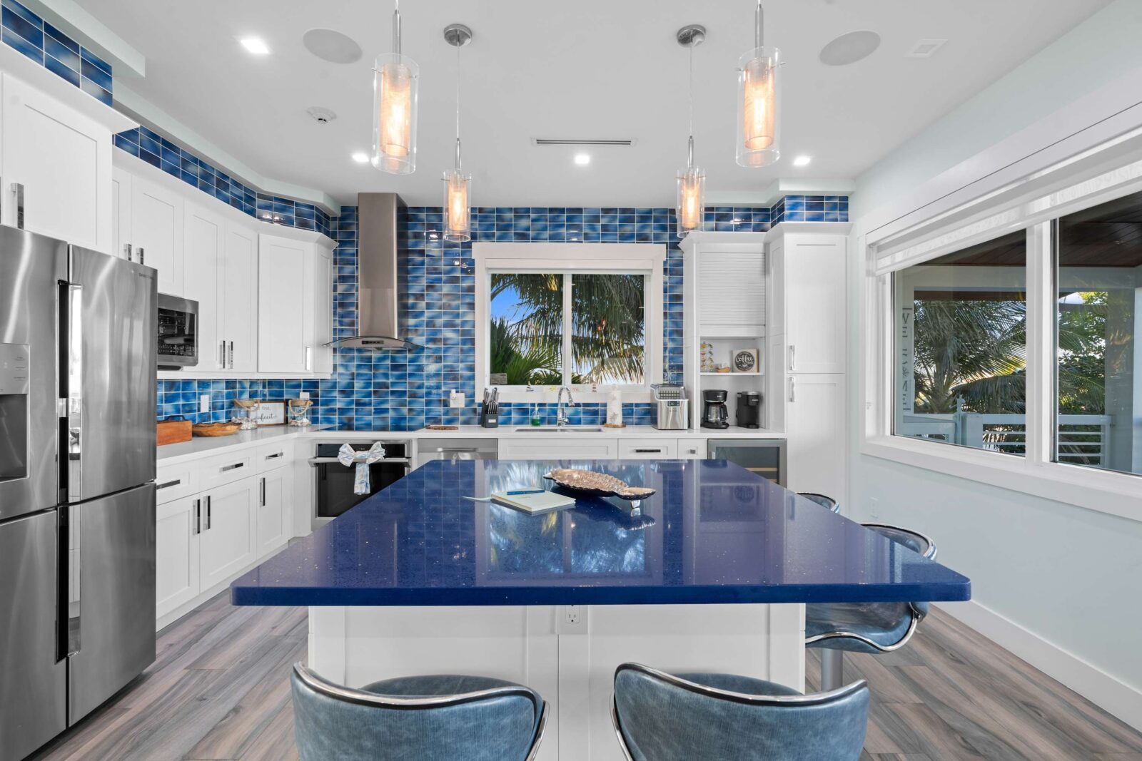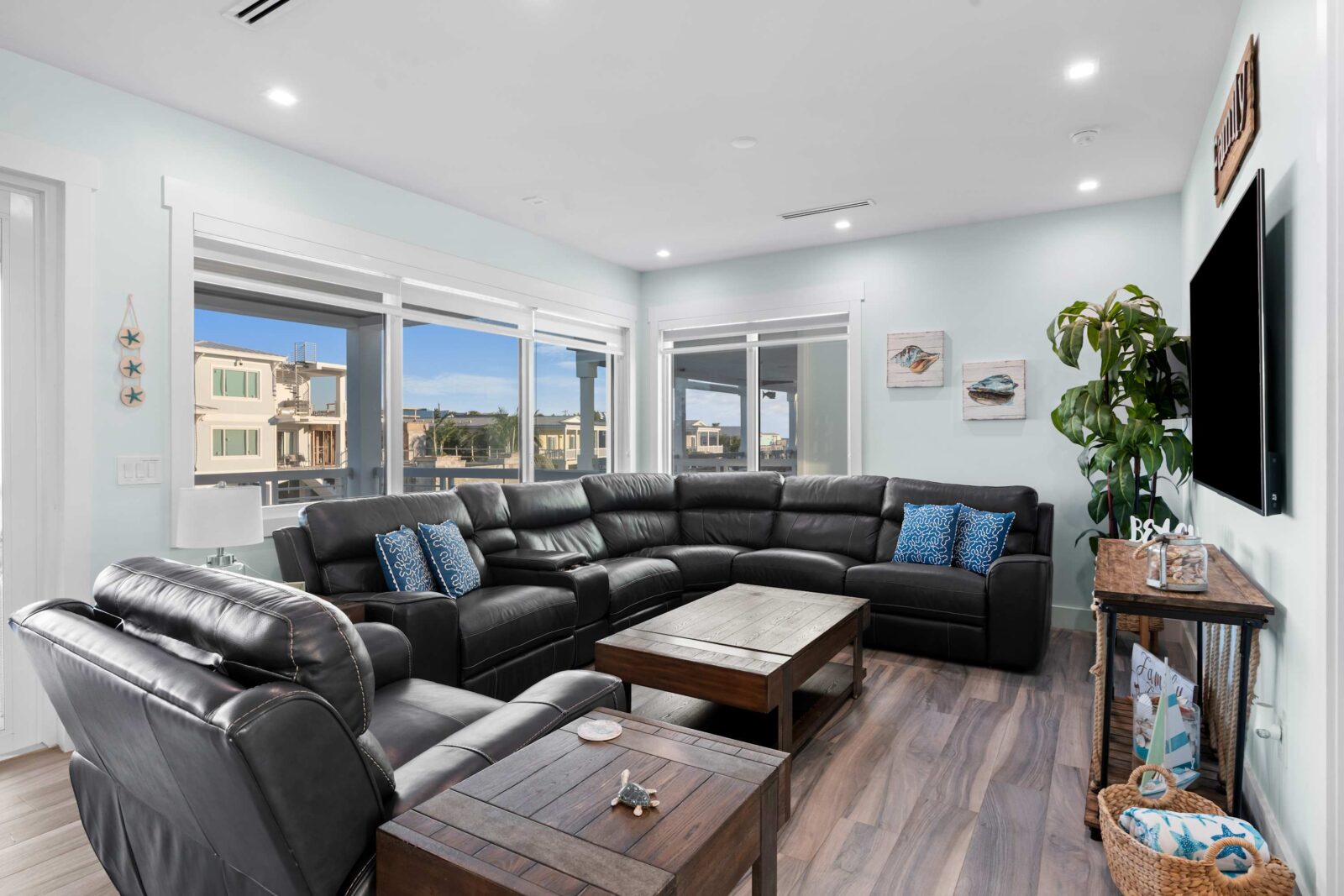 The bright living room is the heartbeat of the open-concept design area, offering a unique and upbeat setting to relax between an exciting sightseeing trip or a day at the beach.