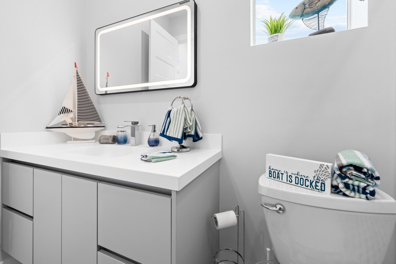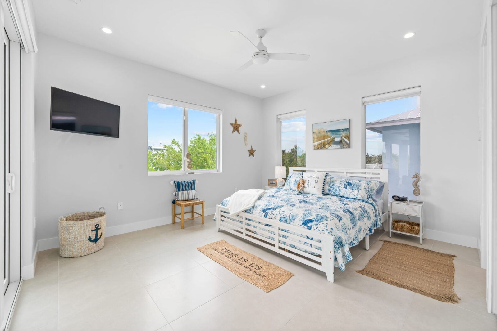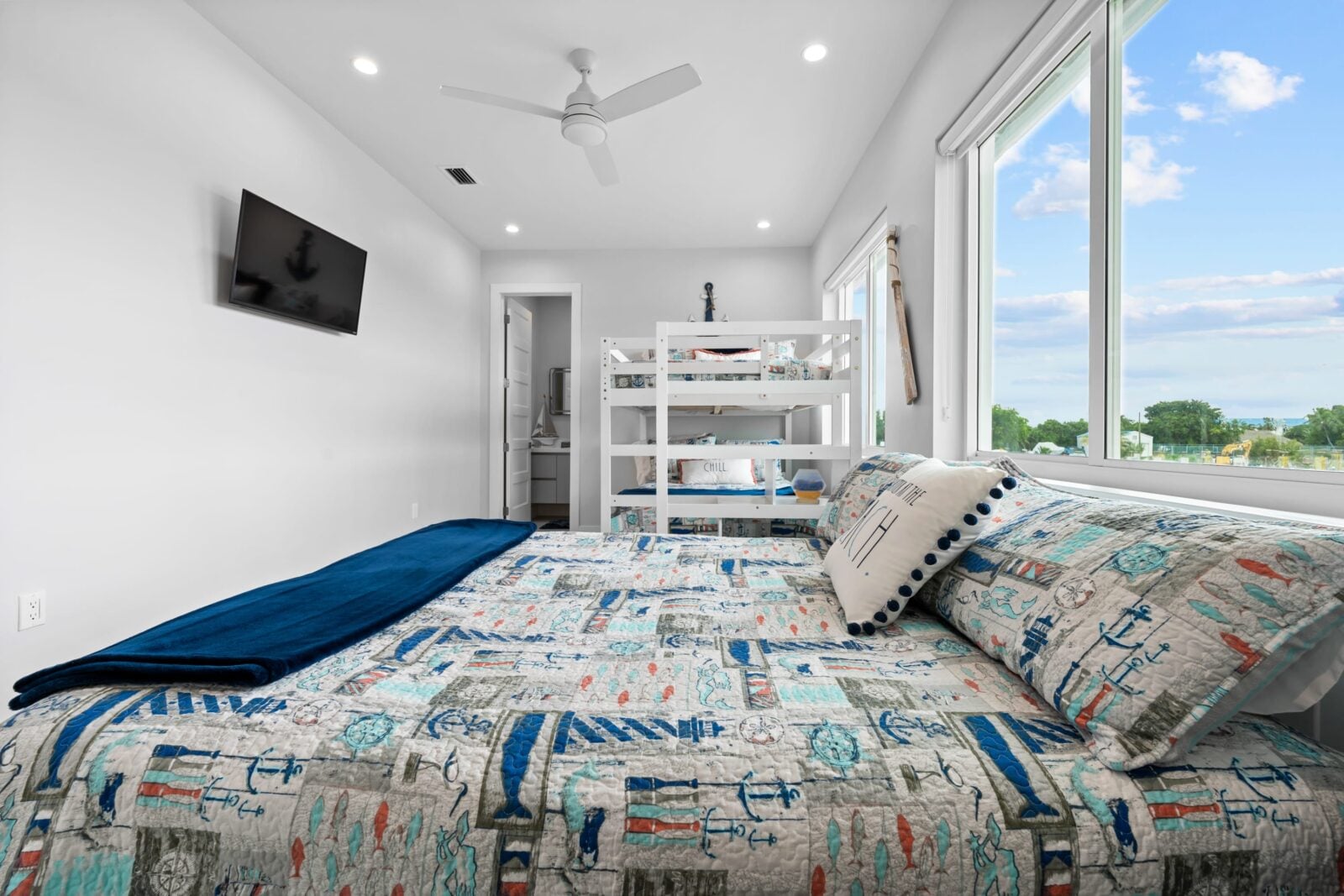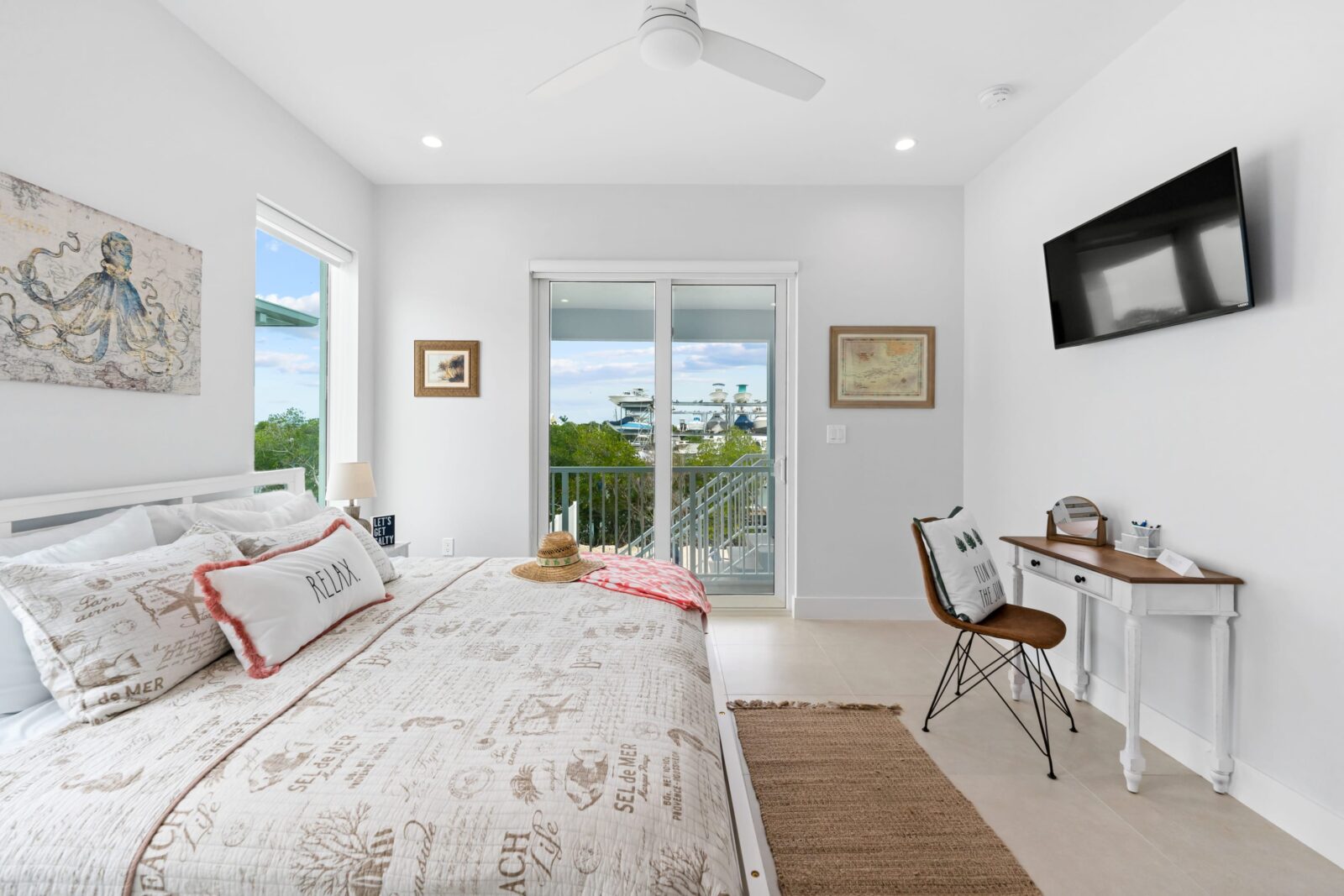 Additionally, the boat storage directly across the water has bright spotlights on all night that shine into the house, so maybe some darkening shades for those rear bedrooms or bring an eye mask.