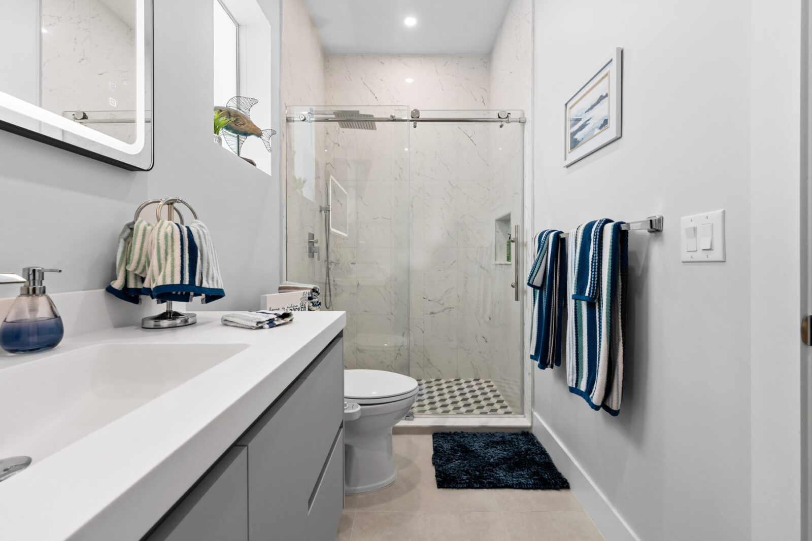 The bathrooms were clean, had great water pressure and had some upgraded amenities including an electric mirror and bidets. There were plenty of bath linens for us to use between washes.